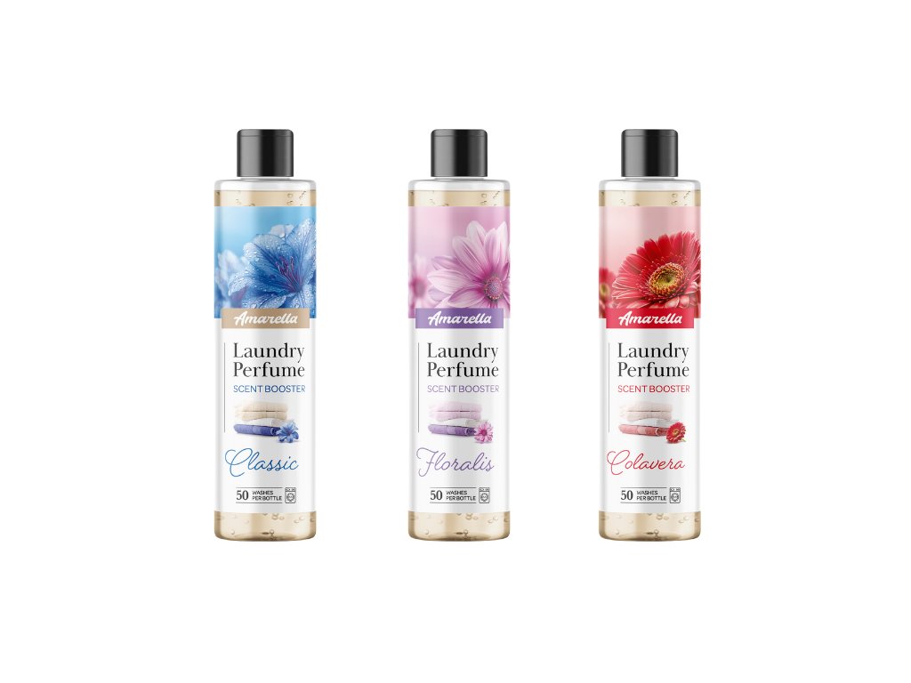 Wäscheparfüms AMARELLA sind hochkonzentrierte parfümierte Öle, die für eine einfache und effektive Auffrischung Ihrer Kleidung entwickelt wurden. Dank der fortschrittlichen Technologie verleihen sie den Textilien langanhaltende Frische, Sanftheit und ein makelloses Aussehen. Die Wäsche bleibt schön weich und duftend sowohl nach dem Trocknen als auch während des Tragens, sei es für Alltagskleidung, Handtücher oder Bettwäsche. AMARELLA hebt das gewöhnliche Waschen auf ein neues Niveau und bietet einen intensiven Duft mit einem natürlich sanften Gefühl – mühelos und mit maximalem Effekt.