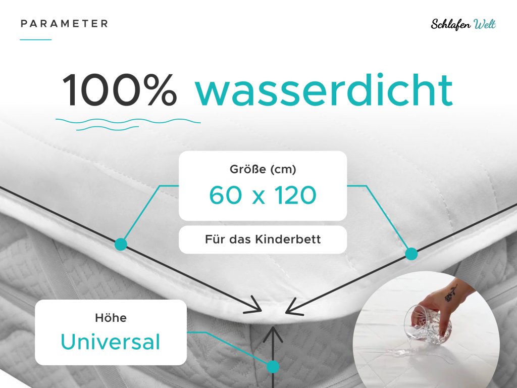 Wasserdichter gesteppter Matratzenschoner für das Bett 60 x 120 cm