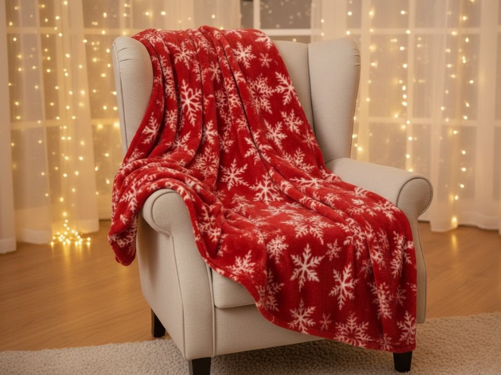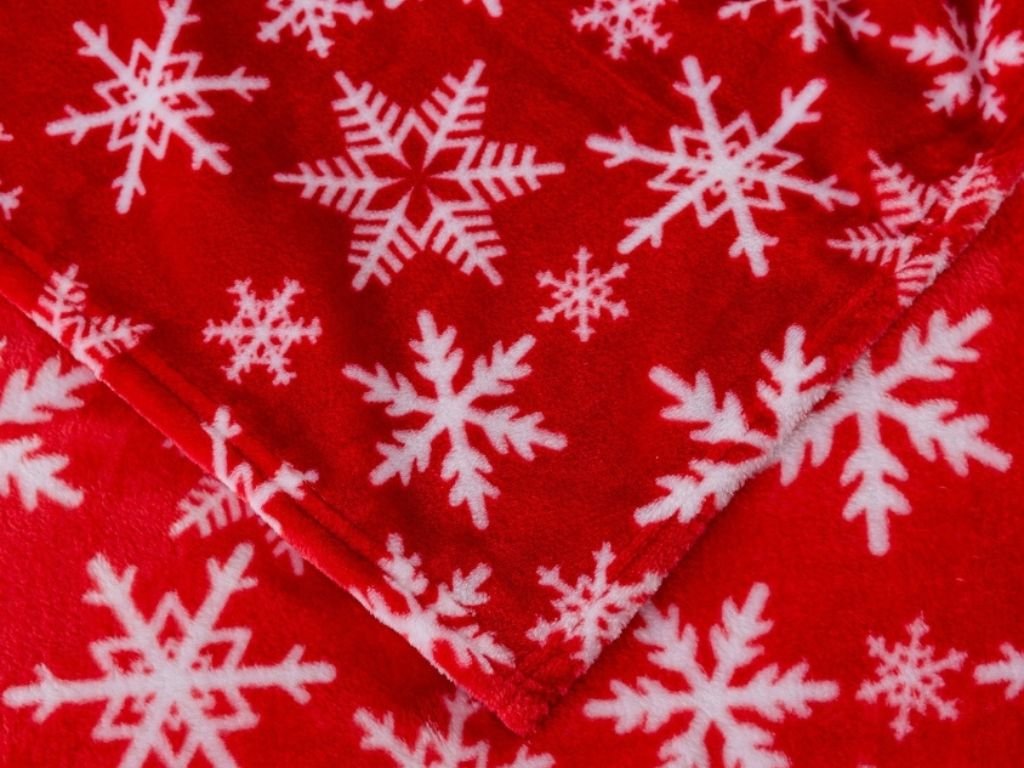 Weihnachtliche Mikroplüsch-Decke FROSTY FLAKES, rot