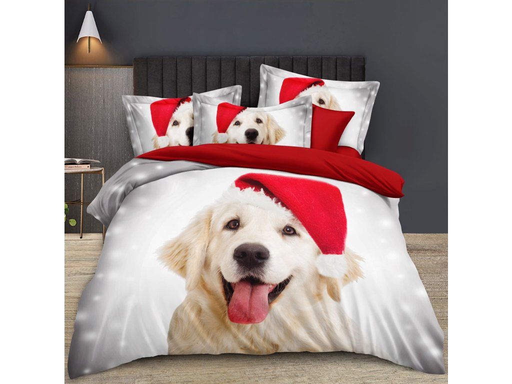 WEIHNACHTSHUND MIT HUT hellgraue Baumwollbettwäsche + Kissenbezug 40 x 50 cm gratis